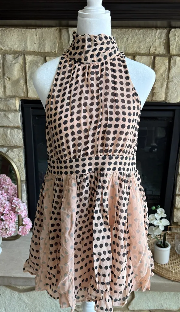 NWOT Anthropologie Maeve Polka Dot Halter Dress with bow in back, size XS petite Pink - $50 - From Amanda