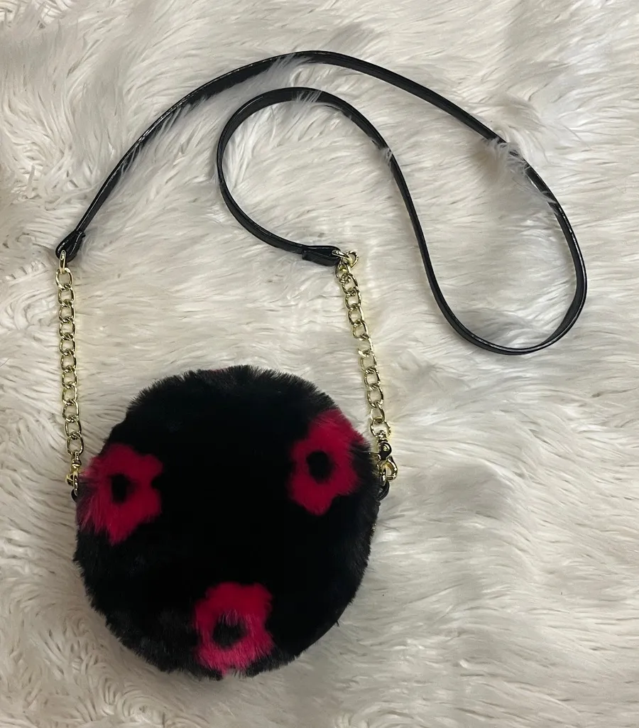 New without tags, unused Betsey Johnson x Trolls crossbody bag Canteen style Faux fur black with bri... Show more