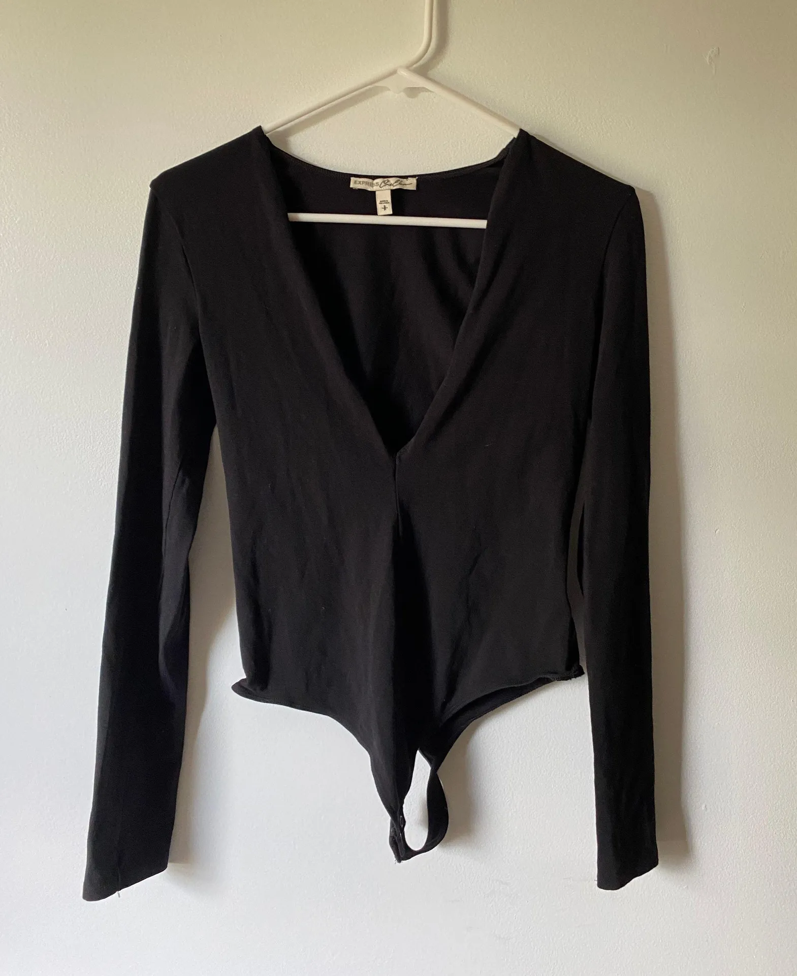 - deep v neck black long sleeve bodysuit - comfortable and stretchy - just too deep/loose on me -sna... Show more