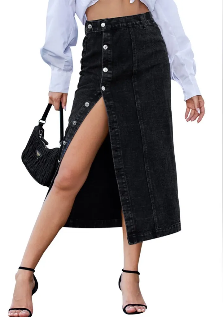 Button Front Split Denim Midi Skirt – High Waist Slim Fit Pencil Skirt (XL) Step up your style with... Show more