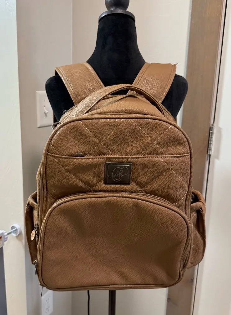 NWOT Cleverly Ellie Brown Chestnut Faux Leather Backpack Diaper Bag Large Zip‎ Tan - $85 - From Abbey