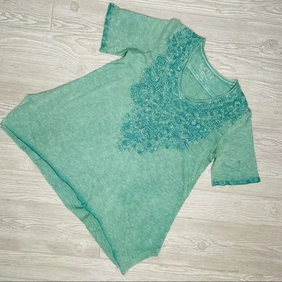 NWOT cotton Caite floral embroidered hand dyed t shirt oversized beach style sm Green - $55 - From Sara