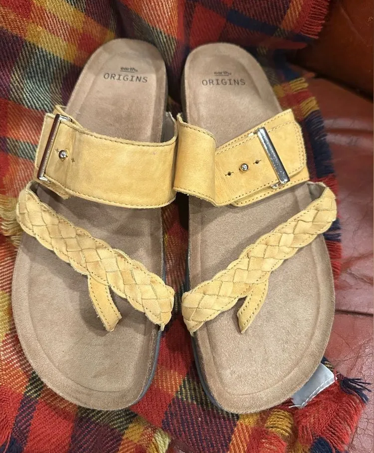 NWOT EARTH ORIGINS Onida Braided Toe-Post Leather Sandals Women YELLOW COLOR Size 10 - $72 - From Francesca