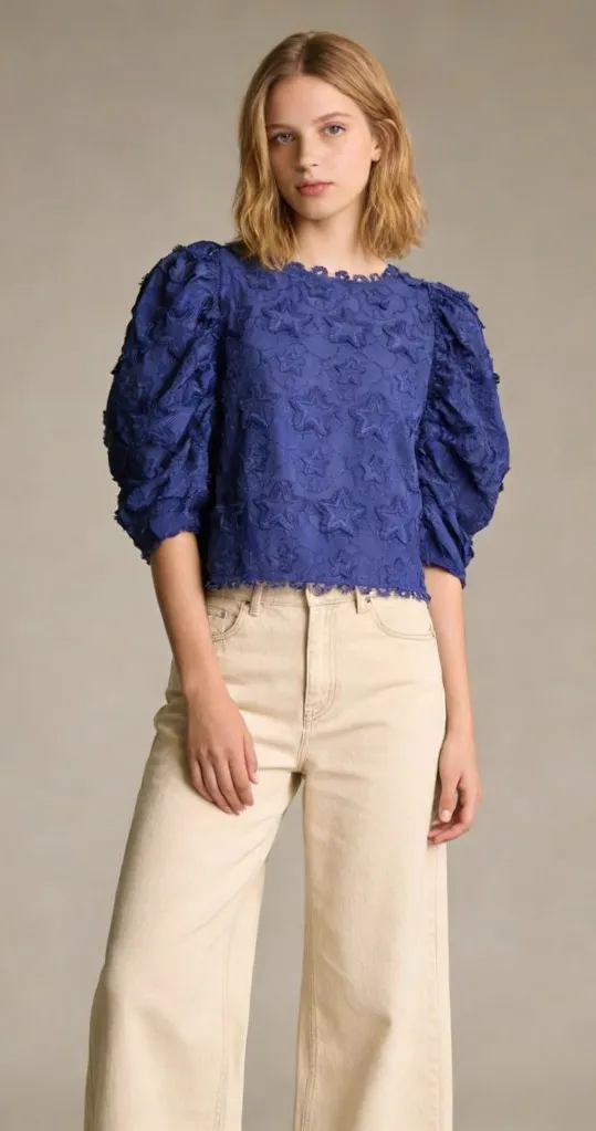 NWOT Farm Rio 3D Star Embroidery Top Blouses Shirt Blue Size L Short Sleeve Size L - $138 - From Angela