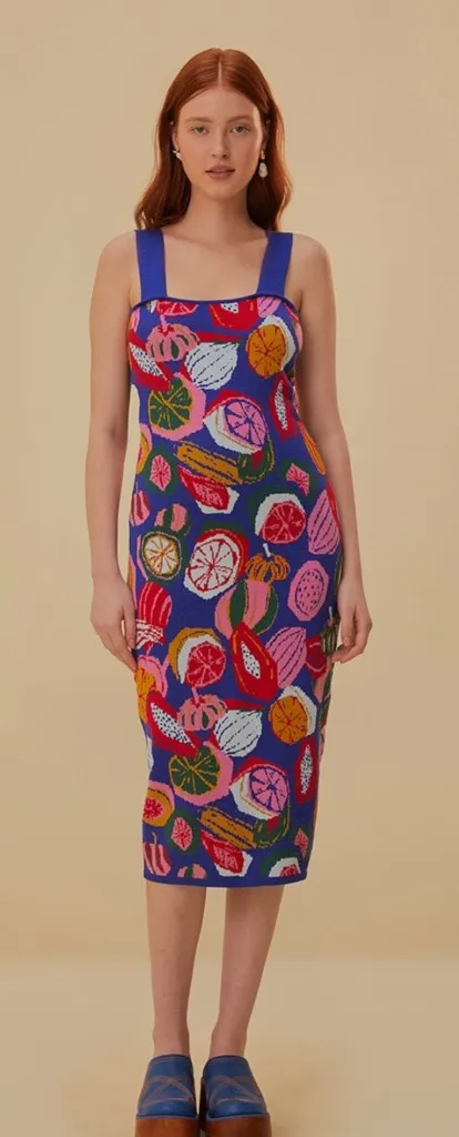 New without tags. Never worn! Vibrant midi dress featuring a colorful pattern. Perfect for making a statement. Add a pop of color to your wardrobe with our playful Colorful Salad Knit Dress! Featuring a flattering square neckline and sleeveless design, this dress is both fun and comfortable. Perfect for any occasion, whether you're dressing up or down. Measurements laying flat: Pit to pit: 16” Length: 38”