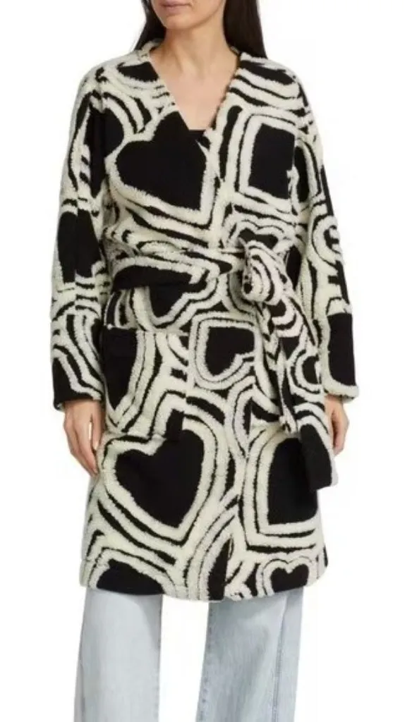 NWOT Farm Rio Wool Blend Wild Hearts Tie-Belt Fleece Coat Size S Black White - $185 - From Angela