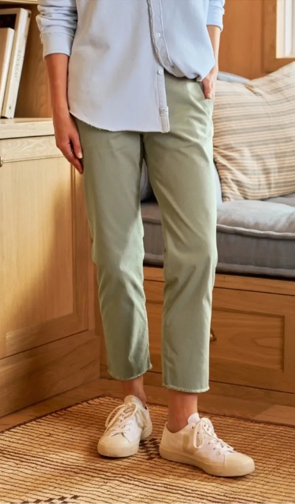 New without tags NWOT Size: 10 Color: Rosemary green Cut in a relaxed fit with undone hems, these Italian chinos are the perfect melding of cool and laid-back. 26" inseam; 13 1/2" leg opening; 9" front rise; 14" back rise Zip fly with hook-and-bar closure Front slant pockets; back welt pockets 97% cotton, 3% elastane Machine wash, tumble dry Made in the USA