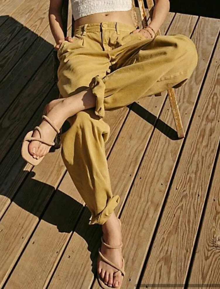 NWOT Free People CYA later skate trousers pants slacks tan size 12