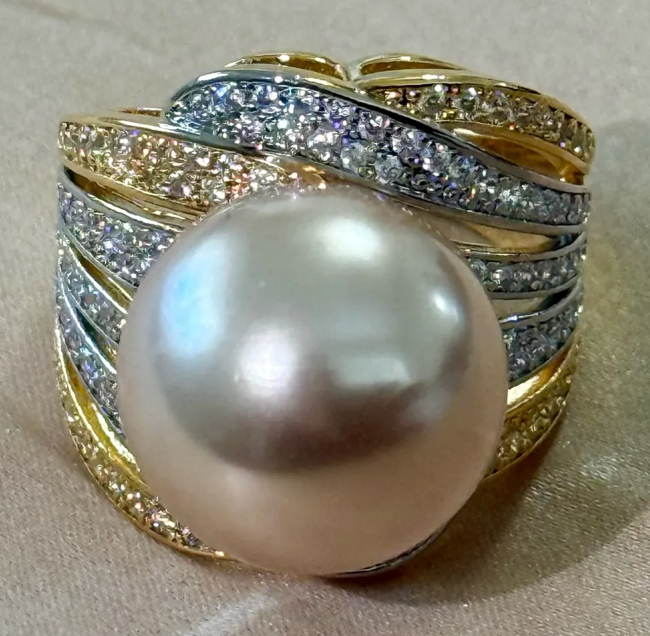 This stunning ring features a lustrous pearl set in a beautiful gold and silver band. Perfect for adding a touch of elegance to any outfit. Very Stunning Pearl Ring We have it in size 6,7 Comes with gift packages Gold/Silver tone with good quality rhinestones #pearl #golden color