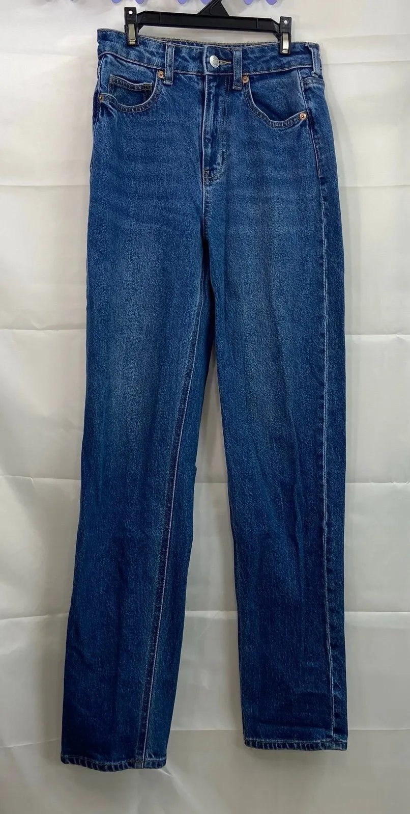 H&M women's dark medium wash blue denim straight cut stretch jeans pants Size 2 In new without tag... Show more