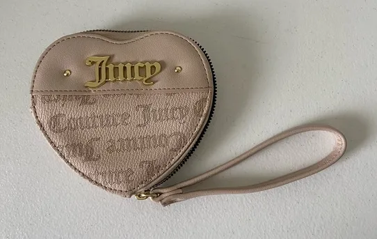 Juicy Couture wristlet purse. Wristlet is tannish pink material with gold hardware. Has a zipper tha... Show more