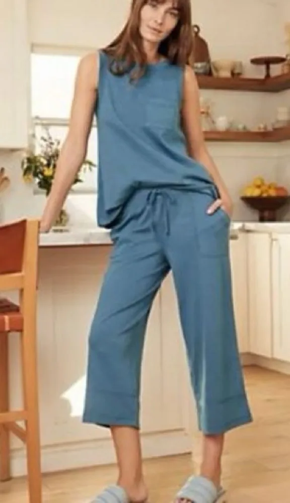 Whether you're lounging at home, running a quick errand, or picking the kids up from school, this coordinating set exudes comfy, cool vibes that you'll love to show off all summer long. From Koolaburra by UGG. Includes top and cropped pants Features: crew neckline, chest pocket, sand wash interlock, heat seal logo at bottom hem Fit: semi-fitted; follows the lines of the body with added wearing ease P2P 19” These French terry pants are wearable all year round -- from sea-side lounging to winter nights on the couch watching your shows. From Koolaburra by UGG. Fabrication: French terry knit Features: ankle length, patch pockets, heat seal logo at bottom hem of top Rise: slightly below the waist Fit: semi-fitted; follows the lines of the body with added wearing ease Leg Shape: wide leg; widens fashionably from thigh to leg opening Inseam: 24" Content: 60% cotton/40% polyester Care: machine wash, tumble dry Tags taken off but never worn