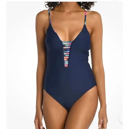 NWOT La Blanca Painted Leaves One Piece Reversible Swimsuit Blue Size 12 - $57 - From Latoya