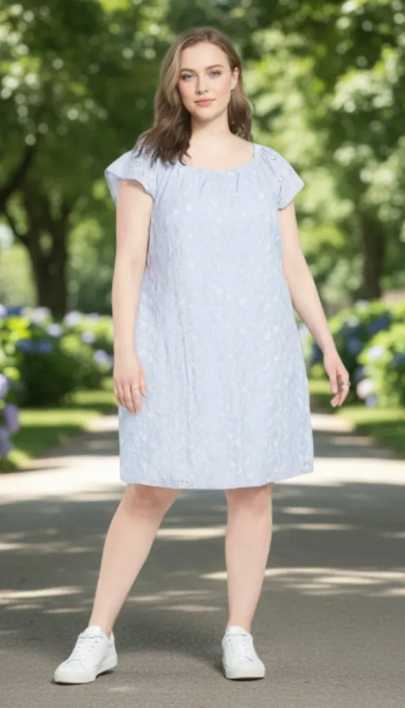 convertible on-or-off the shoulder dress in comfy cotton with pretty eyelet details. Off-the-shoul... Show more