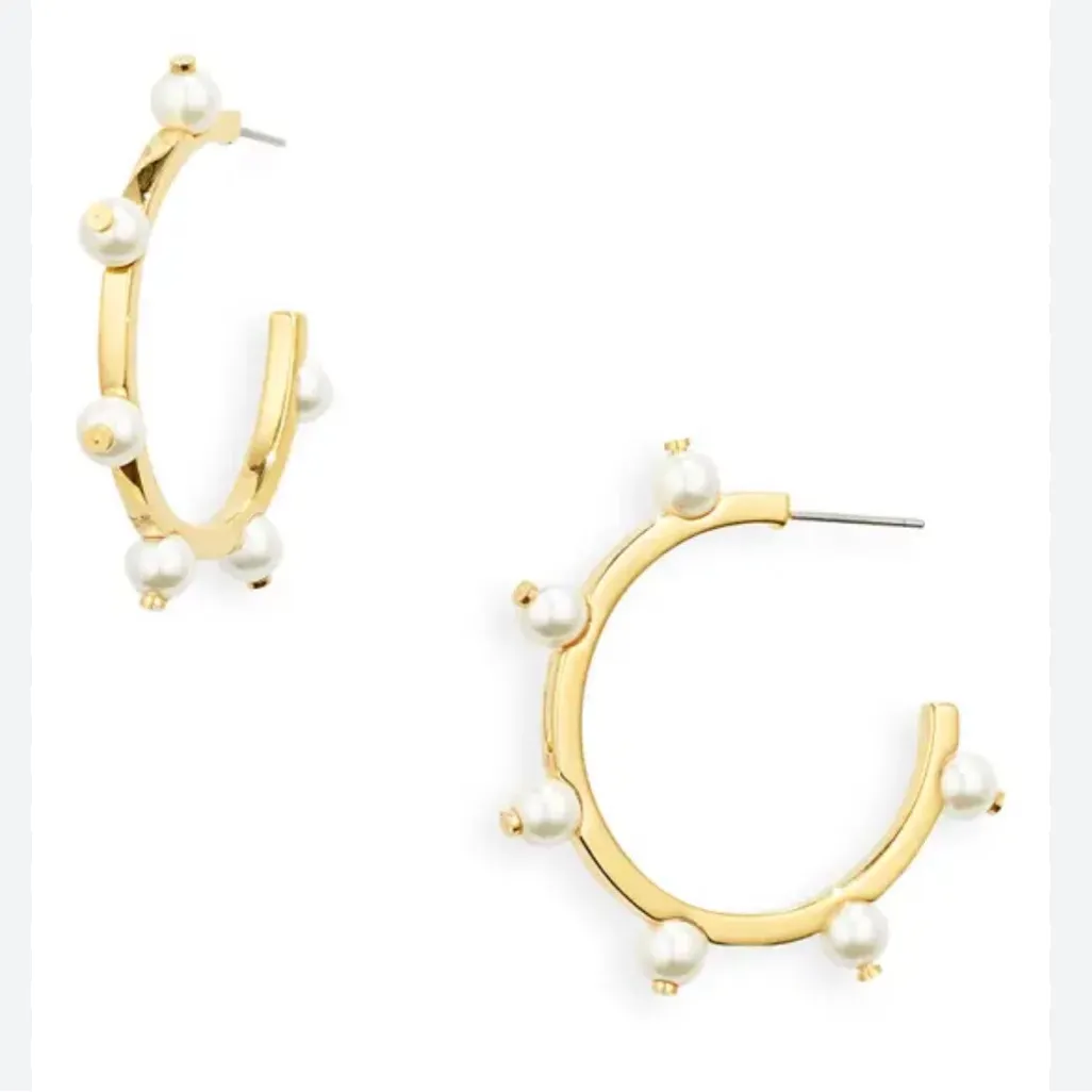 NWOT Lele Sadoughi Gold and Pearl Hoop Earrings - $42 - From Ch
