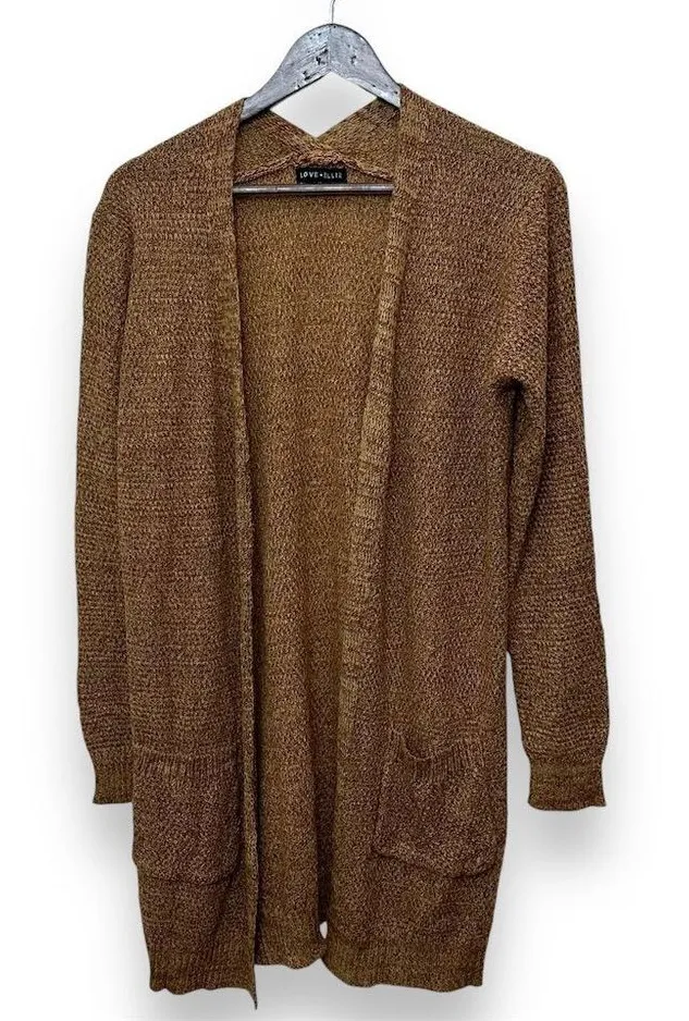 Wrap yourself in cozy comfort with this charming brown cardigan sweater, perfect for those crisp fall days. Crafted from a soft blend of polyester and acrylic, this knit cardigan offers a regular fit that feels just right. The long sleeves and convenient pockets make it a practical choice for casual outings or a relaxed day at home. Its solid pattern and versatile style make it an ideal companion for coffee dates, weekend strolls, or casual gatherings. Easy to care for with machine washable fabric, this sweater is ready to become your new favorite. Condition: New. Brand: Love Ellie Size: M Type: Sweater Style: Cardigan Color: Brown Material: Polyester, Acrylic Sleeve length: Long Sleeve Features: Pockets Fabric type: Knit Occasion: Casual Fit: Regular Garment care: Machine Washable Orders shipped same day or next. Please look at the measurements for best fit. Stored in a smoke-free, pet-free home. Colors may vary slightly due to lighting and angle.