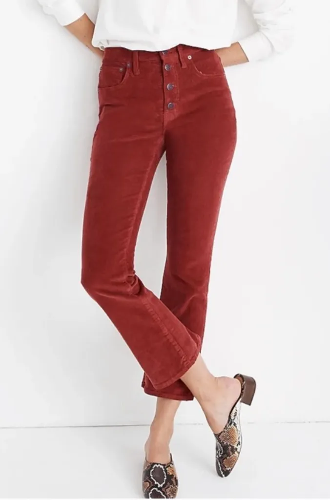 NWOT Madewell Cali Demi Boot Cut Corduroy Pants 24 Cropped High Rise Rust Red - $45 - From Kristen