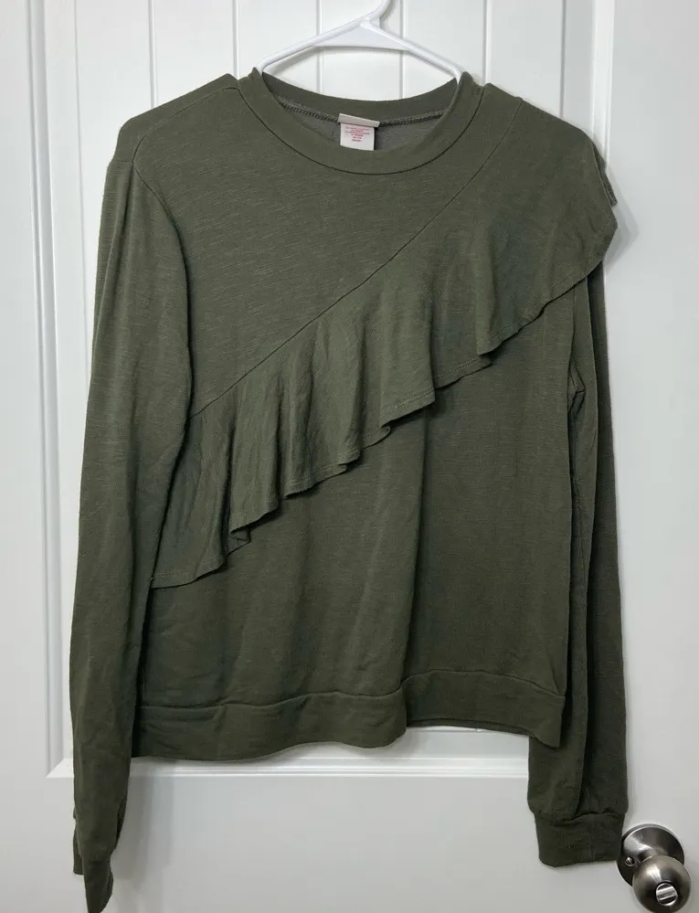 NWOT Mossimo Supply Co women’s‎ olive green ruffle long sleeve soft knit top M Size M - $14 - From Emily