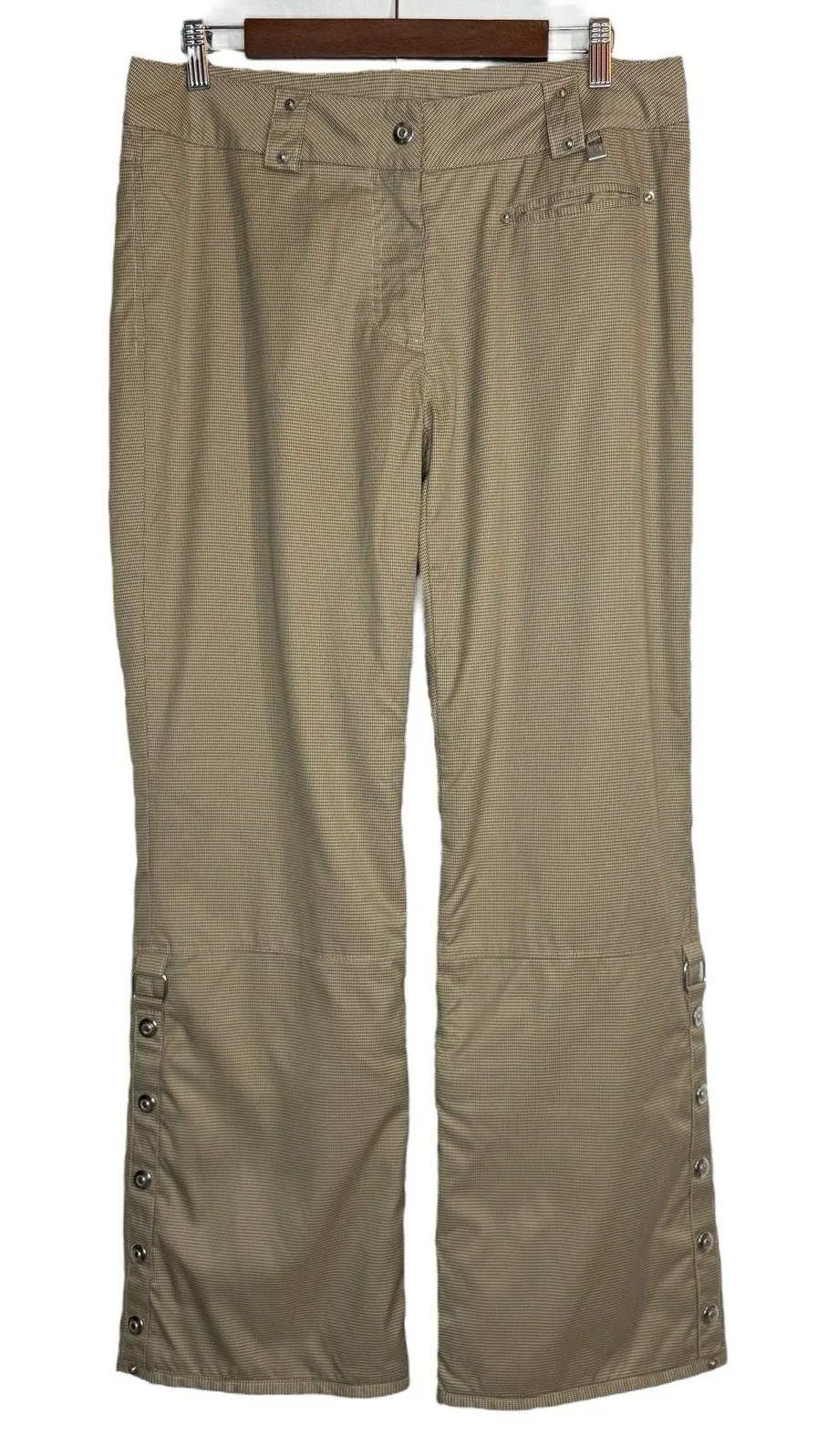 NWOT NILS Sportswear Houndstooth Button Insulated Ski Snowboard Pants Size 10 Never worn Elevate your winter gear with these NILS Sportswear Women's Ski Pants in a subtle tan houndstooth pattern. Designed for performance and style, these pants feature snap hems, a mid-rise fit, and a sleek tailored silhouette perfect for skiing, snowboarding, or après-ski lounging. Crafted from 100% polyester shell, lining, and insulation, these pants provide warmth without bulk. Details include multiple zip and snap pockets, reinforced knees, side leg snaps for ventilation or easy boot access, and the signature NILS logo on the back leg. Durable, water-resistant, and elegant — these are the perfect addition to any high-end ski wardrobe. Features: Brand: NILS Sportswear Size: 10 (see measurements in photos) Color: Tan micro houndstooth Material: 100% Polyester (shell, lining, insulation) Snap hem openings for easy boot fit Zip pocket + metal NILS logo tag detail Insulated, water-resistant, breathable Ships within 24 hours Keywords: Nils ski pants, women's snow pants, houndstooth ski wear, insulated ski trousers, snowboarding pants, winter sports gear, apres ski fashion, mountain wear, tan ski pants, performance snow pants, waterproof ski pants, luxury ski brand, alpine wear, outdoor adventure clothing, cold weather gear, premium ski apparel, adjustable hem pants, winter hiking pants, women's size 10 ski pants, NILS sportswear snow gear