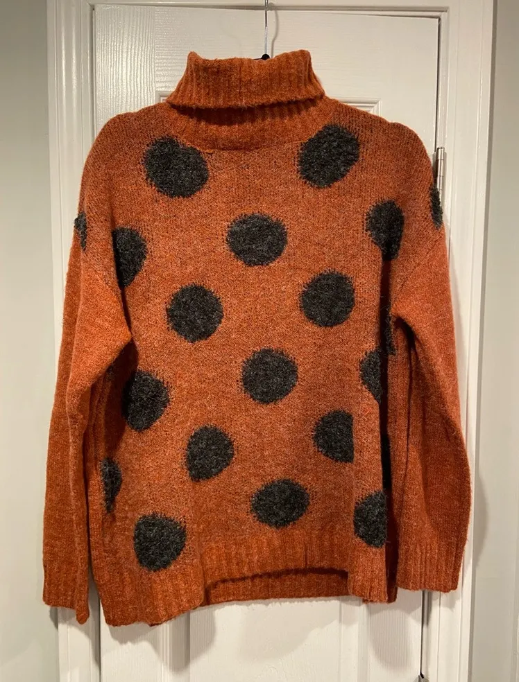 NWOT NorthStyle Size L Rust Black Polka Dot Cowl Neck Long Sleeve Fuzzy Sweater Orange Size L - $25 New With Tags - From Lindsey