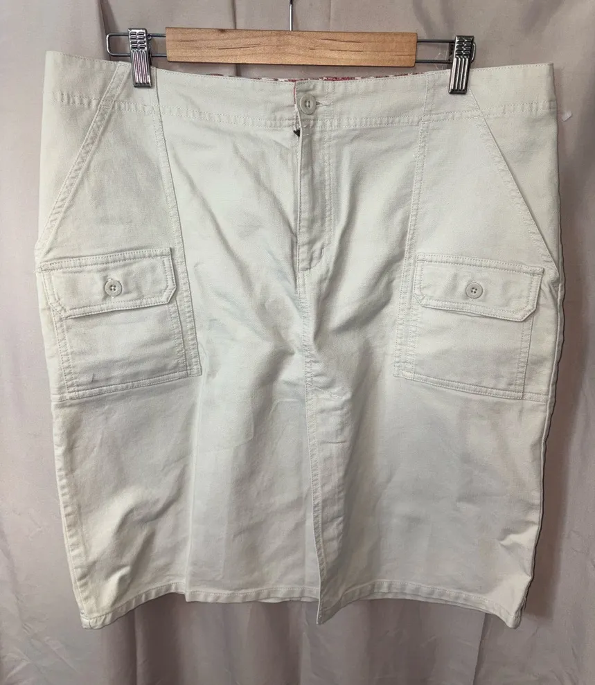Casual cream cargo shorts. Features side pockets. Ideal for everyday wear. never worn, slit was too... Show more