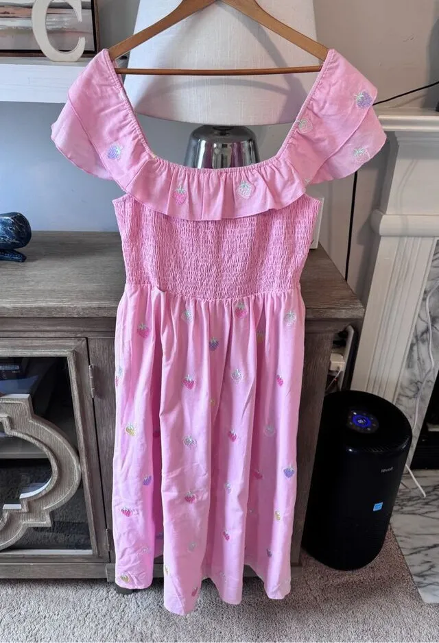 NWOT Olivia Rubin Talia Midi Dress Size: 8 Color: Pink (like the modeled pics. Mine show it darker but it’s not. My lightening wasn’t very good) Condition: New without tags Measurements: In Pictures Retail: $345 Approximately 46.5in from shoulder to hem Model is 5'11 and is wearing a size 2. Measurements may vary slightly by size. Design details: off-the-shoulder design, smocked bodice, embroidered strawberries Slip-on styling Shell: 100% cotton Lining: 100% rayon Hand wash Imported Smoke free home and fast shipping!
