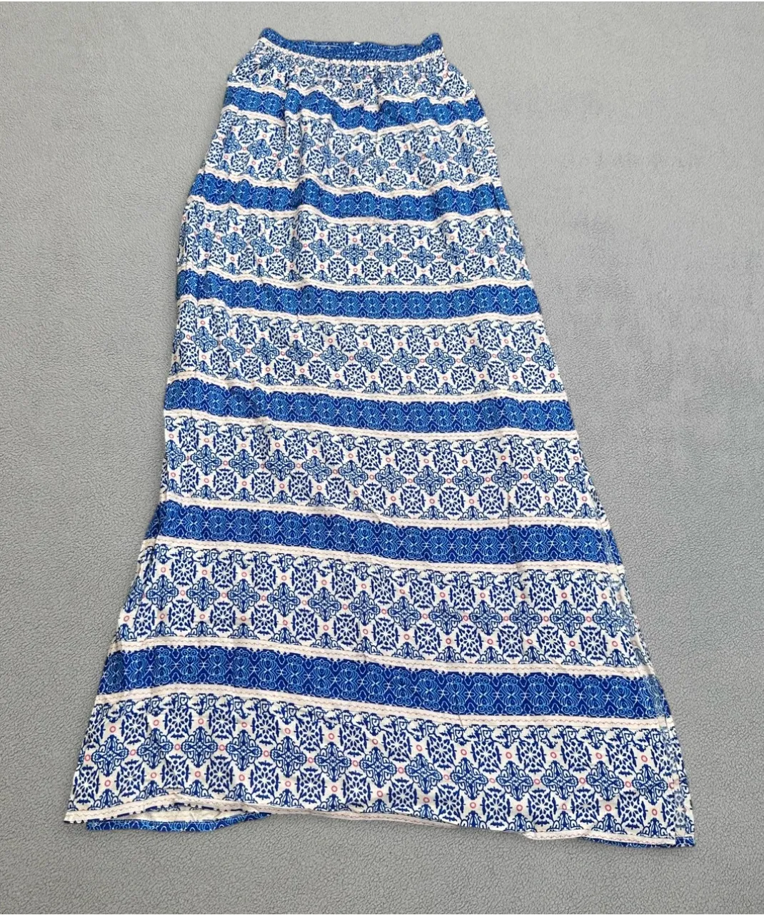 NEW WITHOUT TAGS Brand New! Never Worn! No rips, holes, or stains! I ship items out EVERY DAY so EXPECT a QUICK delivery! Measurements: • Total Length: 42 inches • Waist: 22 inches • Bottom Hem: 24 inches Type: Skirt Style: Maxi Skirt Length: Long Department: Women Pattern: Paisley Material: Rayon Fabric Type: Jersey Features: Elastic Waist, Slit, Lightweight Theme: Bohemian, Beach, Summer, Casual Closure: Pull On Occasion: Casual, Travel, Party/Cocktail 0981 I answer most questions instantly! Please don't hesitate to contact us if you have any questions, we will be glad to answer! Thank you for shopping! Keywords: maxi skirt, bohemian, smocked waist, elastic waist, blue, white, patterned, Oscar-S, summer, casual, side slit, rayon, womens