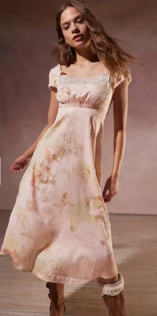 The Kimchi Blue Trudy midi dress is a dreamy, satiny dress with a floral print, featuring a scoop or... Show more