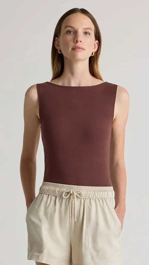 NWT Quince Cocoa Brown Stretch Cotton Jersey Boat Neck Tank – Size M New in manufacturer bag Meet... Show more