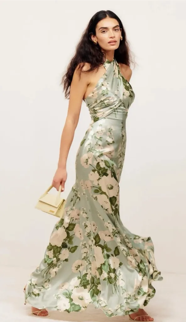 Effortlessly romantic and sustainably made, this Reformation Veria Silk Dress in Tarragon captures t... Show more
