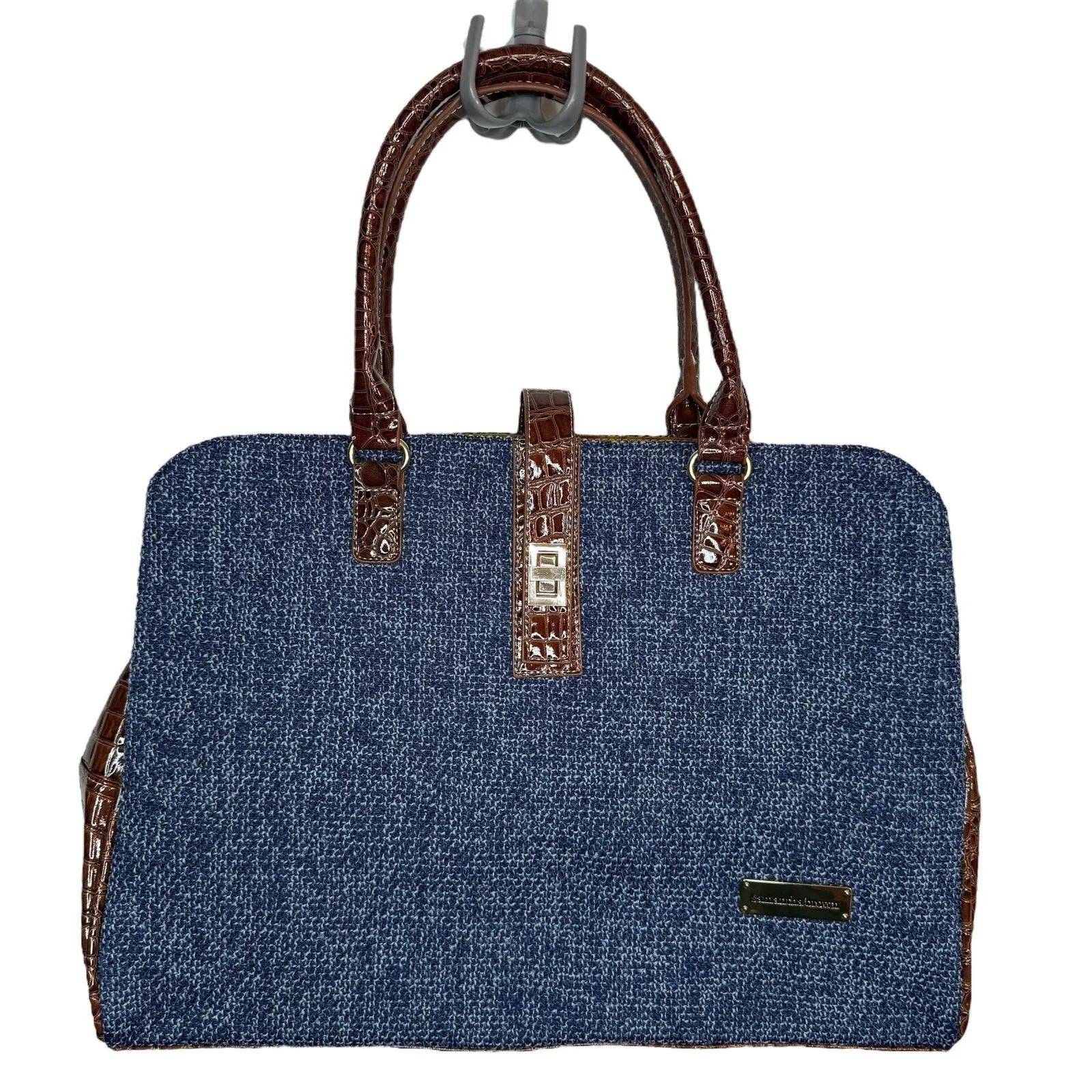 NWOT Samantha Brown Vintage Tweed Tote Blue Carry On Luggage Weekend Bag Never used Chic and functional Samantha Brown Vintage Tweed Tote in classic denim blue textured tweed with rich brown faux-croc embossed trim and gold-tone hardware. Designed with travelers in mind, this structured tote offers multiple compartments and thoughtful details to keep you organized on the go. Features a roomy interior with the signature Samantha Brown travel-themed satin lining, multiple slip and zip pockets, and a bottom zip compartment ideal for shoes or extra storage and a padded safety pocket for laptop/ipad. Dual rolled handles make it easy to carry, and the croc-embossed strap with a turn-lock closure adds a sophisticated finish. Details: Brand: Samantha Brown Style: Vintage Tweed Carry-On Tote Color: Blue tweed with brown croc trim Material: Tweed fabric body / faux leather trim Hardware: Gold tone Interior: Travel print lining with zip and slip pockets Features: Dual top handles, bottom zip compartment, exterior zip pocket, turn-lock strap closure Condition: NWOT — unused, clean interior and exterior Approx. measurements: shown in photos Ships within 24 hours Keywords: Samantha Brown bag, travel tote, weekender bag, carry on luggage, overnight bag, airplane personal item, tweed purse, croc trim tote, vintage style luggage, travel organizer bag, structured tote, blue and brown handbag, classic travel bag, HSN Samantha Brown