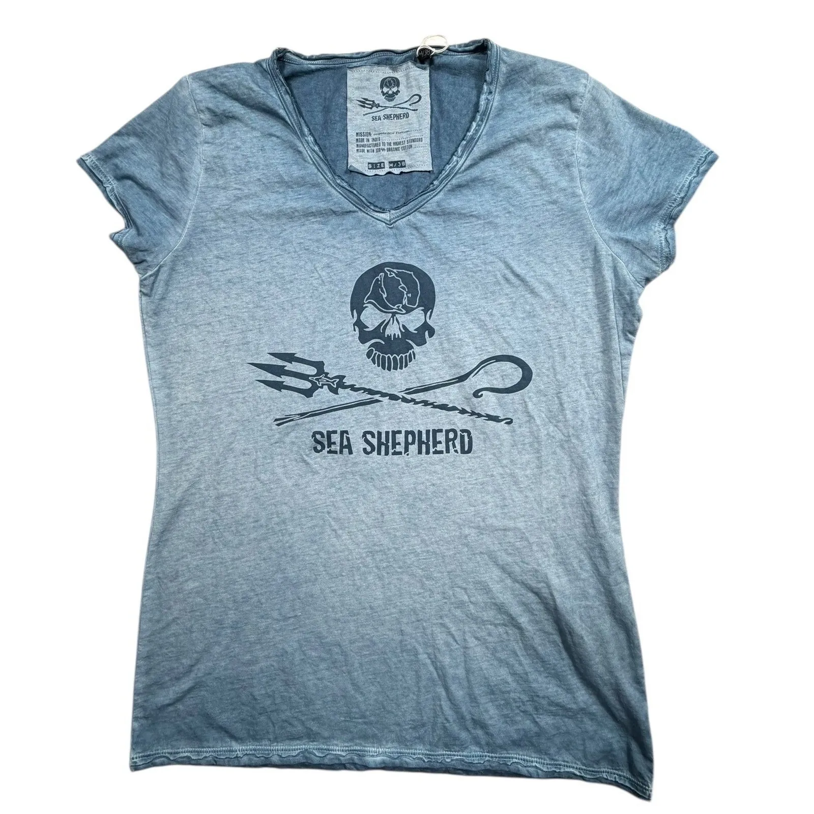 Sea Shepherd Jolly Roger Women's V‑Neck T‑Shirt Women's Size Medium (M / 38) Color: Blue Condition:... Show more
