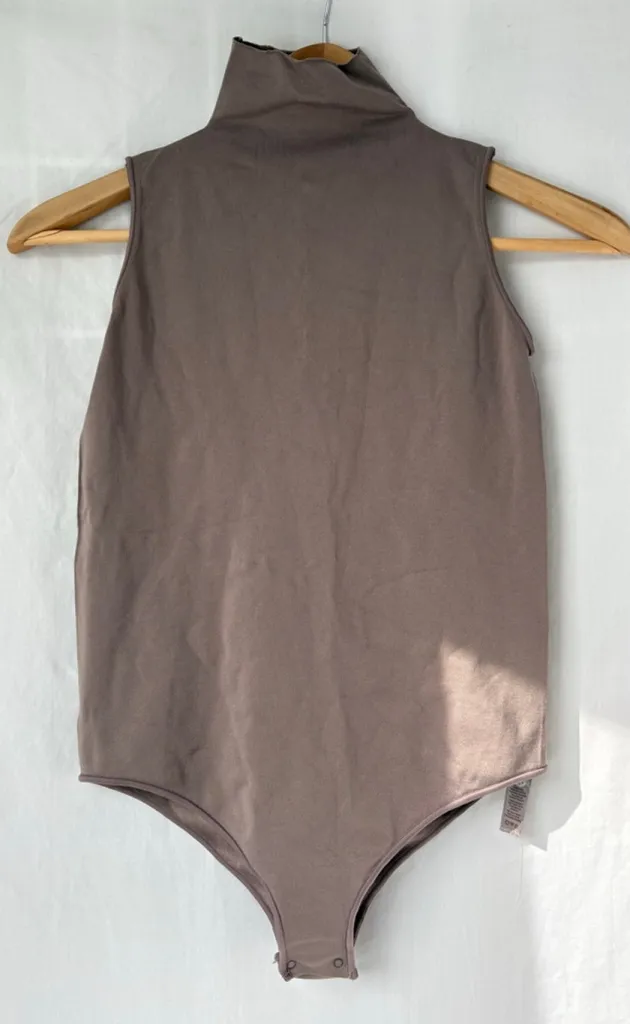 new without tags SKIMS Essentials Mock neck sleeveless bodysuit in a brown taupe hue i believe it’s... Show more