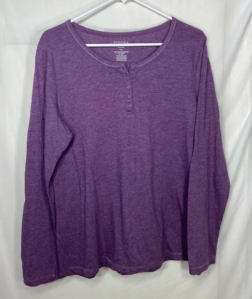 Sonoma women’s purple intimates pajama lounge sleep top shirt long sleeve Size XXL in new without ta... Show more