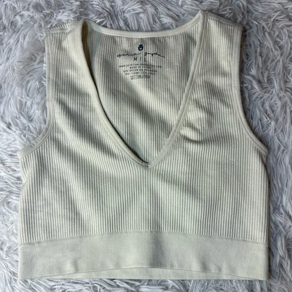 NWOT Spiritual Gangster Metta Plunge Brami Ribbed V Neck Crop Top cream Med/LG Size undefined - $61 - From Tracy