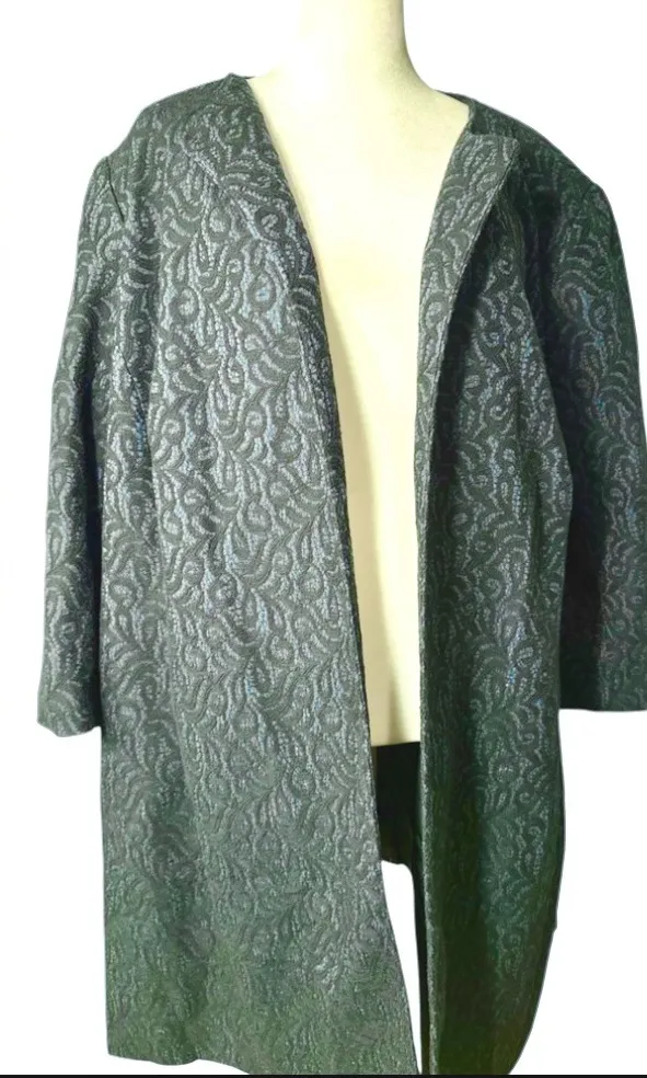 NWOT Elegant Talbot knee length Black swirl floral Lace overlay Teal shade of coat A coat for al... Show more