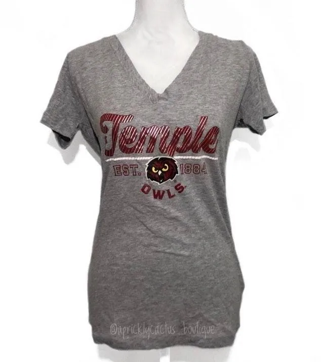 NWOT: new without tags! Heather gray v-neck classic short-sleeved tee top with front Temple University Owls metallic/silver foil screenprint! Ladies’ size Medium and runs true. Stretchy cotton blend fabric. By Rivalry Threads. ❌No trades/swaps or holds.