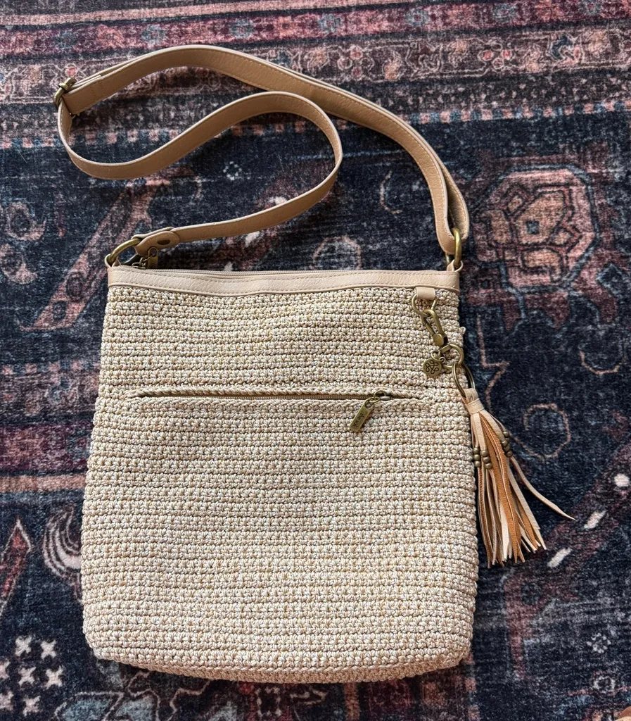 NWOT Smoke free 11in L x 1.75in W x 11in H; Drop: 26in; Weight: 1.21 lb. Back pocket : 7in W x 6.5in D; Front pocket : 9.5in W x 6in D Adjustable crossbody strap Exterior contains front and back zipper pocket Interior contains a back wall zipper pocket and two front wall multi-functional pockets Main zipper closure Exterior: Hand-crochet, Recycled Polypropylene Yarn, 33% Plastic Bank Ocean Bound Recycled Polypropylene + 67% Polypropylene; Soft And Durable With Subtle Sheen Interior: Repreve Lining Trim: Recycled Polyurethane Antique brass tone hardware Please expect variations in color, as our yarn is made of ocean-bound recycled plastic and discrepancies are unavoidable. Due to the handmade techniques used by each artisan, variations may occur, making each bag completely one-of-a-kind To Clean: Wipe clean with barely damp cloth and air dry.