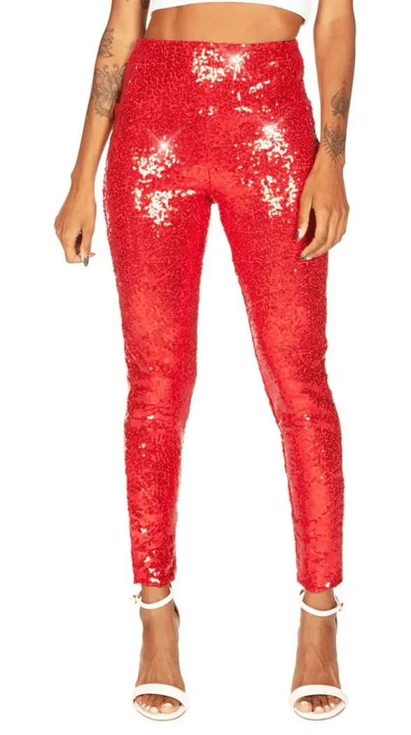 New Without Tags NWOT Tipsy Elves Red Sequin High Waisted Leggings Womens Size Sm Super Stretch Ele... Show more