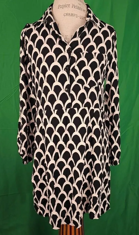 NWOT Zara Womens Emilie Black White Geometric Short Dress Medium NO BELT Bust: 38" Arms: 24" Waist:... Show more