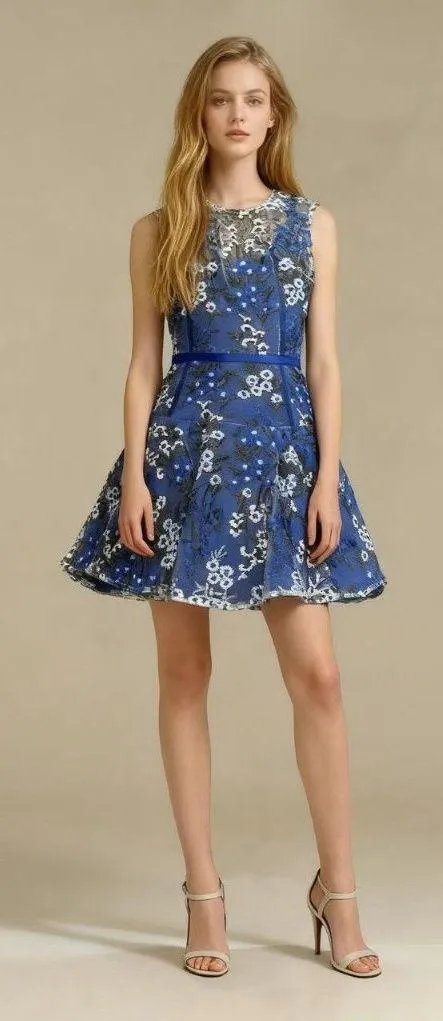 NWT $498 BRONX & BANCO Blue & White Floral Embroidered Mesh Cocktail Dress L 8 Size L - $165 New With Tags - From Angela