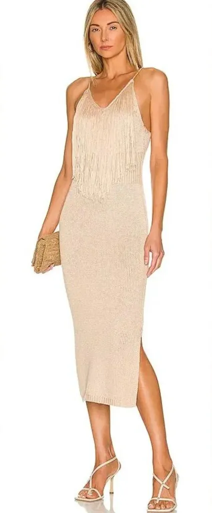 NWT 525 AMERICA Fringe Tank Sweater Dress in‎ Oat (Beige) - large Tan - $61 New With Tags - From Stephanie
