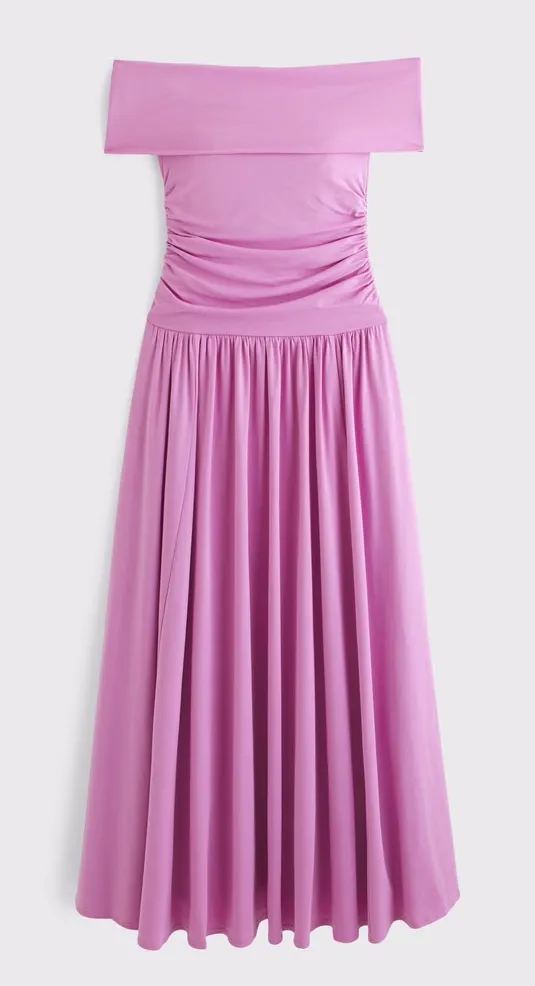 NWT Abercrombie & Fitch A&F Soft Modal-Blend Collection Off Shoulder Maxi Dress Small Tall (ST) Ple... Show more