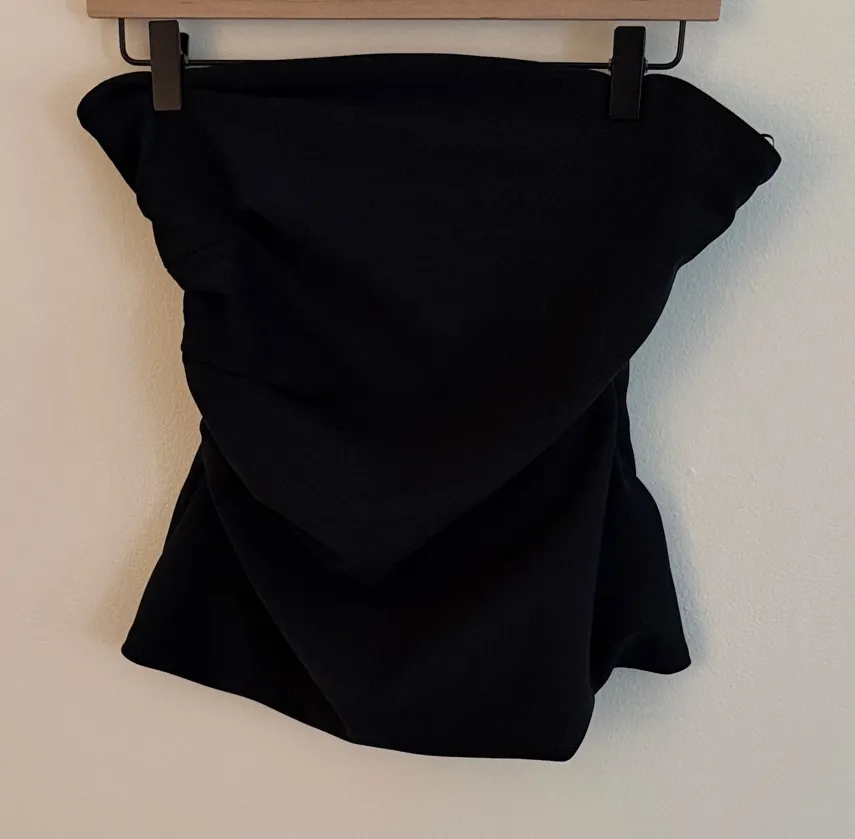 Elegant black strapless top. Perfect for any occasion. Comes with optional straps. Has silicone band... Show more