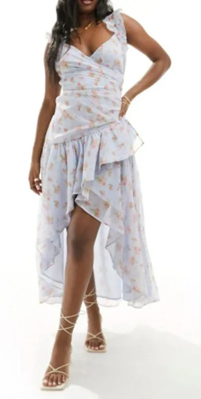 New with tags Abercrombie & Fitch Floral Blue Pink Ruffle High Low Maxi Formal Dress $130 retail Si... Show more