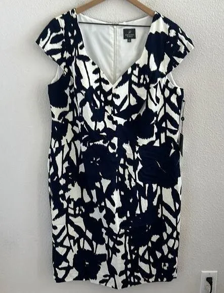 Adrianna Papell Geo Professional Business Dress Neutral Crossover Bands Sweetheart. Back zip. Lined.... Show more