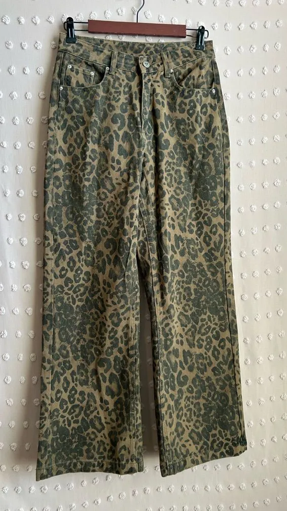 NWT Aelfric Eden Leopard Print Wide Leg High Waisted Cotton Jeans Sz 28 Brown - $53 New With Tags - From Erika