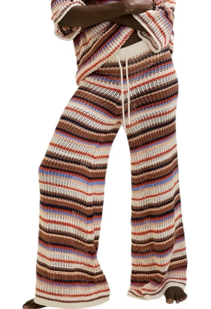 aerie crochet pants, nwt aerie pants, boho crochet pants, wide leg knit pants, beach lounge pants, sold out aerie, striped crochet pants, festival boho pants, cotton crochet pants, resort wear pants, coastal boho style, drawstring lounge pants, aerie party pant, hippie beach pants, relaxed fit pants