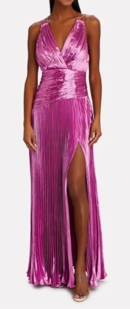 AiiFOS Vera Pleated Metallic Maxi Dress, size 8 in Pink. $798 new with tags - has some runs on plea... Show more