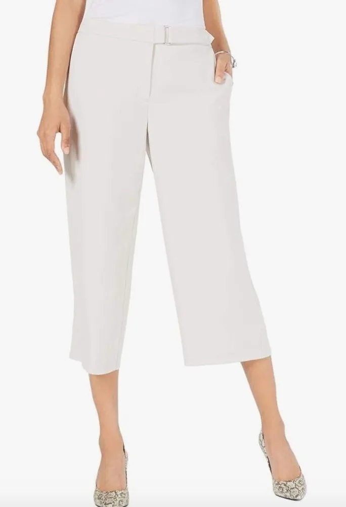 NWT Alfani Women's Belted Culotte Pants Comfort Waist Office Business Casual Light polished beige Si... Show more